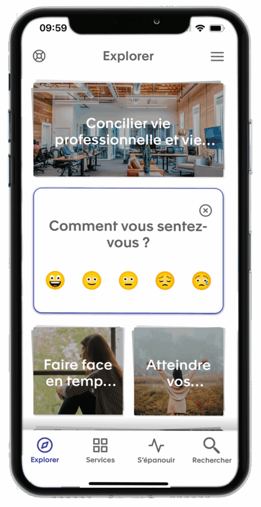 Les aléas de la vie personnelle et professionnelle sont autant de facteurs qui impactent au quotidien notre santé mentale. Le service d’eCoaching personnel de Lyra permet à vos employés et aux membres de leurs foyers de trouver des ressources professionnelles immédiates, toujours disponibles quel que soit le lieu de consultation, et d’engager une démarche complète de prévention afin de préserver leur santé mentale.